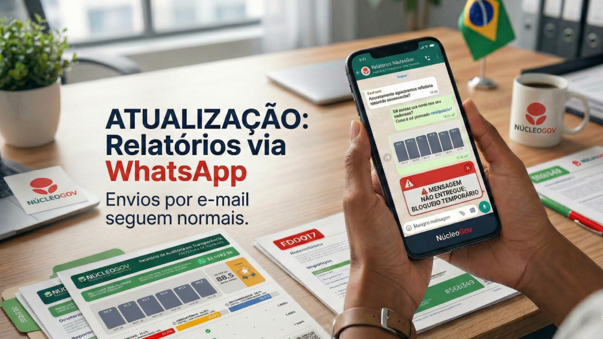 A NúcleoGov informa que, eventualmente, o WhatsApp pode realizar bloqueios temporários no envio de mensagens, o que pode impactar o encaminhamento automático de nossos relatórios técnicos de auditoria para os números cadastrados.